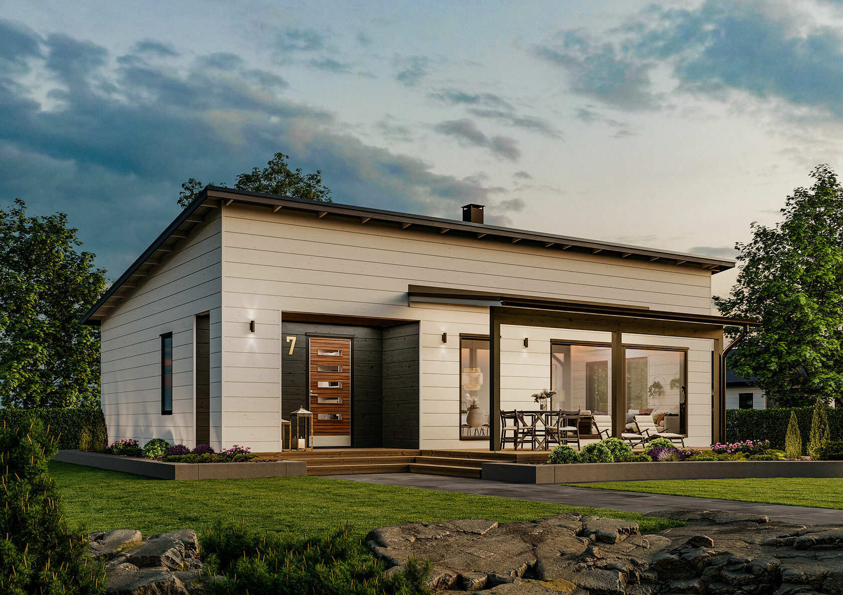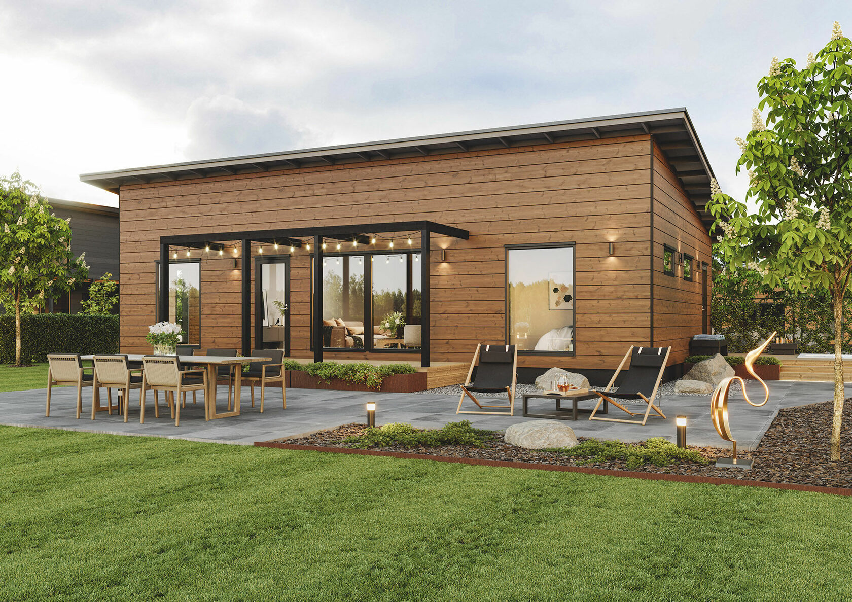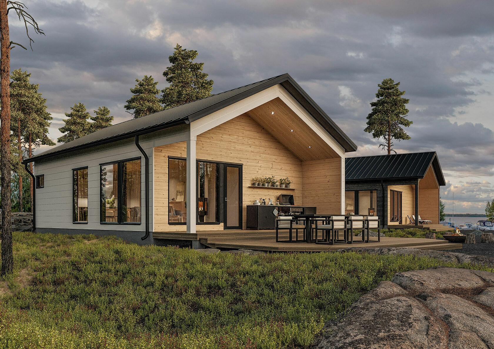 Для производства каркаса мы используем древесину камерной сушки. В качестве утеплителя применяем минеральную вату или современны ППУ утеплитель. Отделка фасада и финишный материал кровли могут быть любыми. Внутри стены могут быть подготовлены к чистовой отделке или уже с чистовой отделкой.